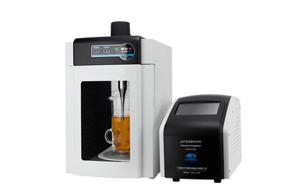 超聲波細胞粉碎機是基于超聲波在液體中的空化效應,換能器將電能量通過變幅桿在工具頭頂部液體中產生高強度剪切力,形成高頻的交變水壓強,使用空腔膨脹、爆炸將細胞擊碎。另外,利用超聲波在液體中傳播時產生劇烈地擾動作用,使顆粒產生很大的加速度,從而互相碰撞或與器壁碰撞而達到破碎、乳化和分離的效果。